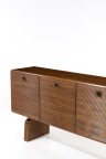 Gio Ponti (1891-1979) Enfilade Noyer verni et laiton Modèle créé vers 1937 H 97 × L 228 × P 45 cm Expertisée par les Archives Gio Ponti