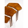Gio Ponti (1891-1979) Ensemble de trois tables d’appoint Noyer verni Modèle créé vers 1955 H 39,5× L 79× P 48cm (groupées) H 39,5× L 25× P 48cm (par élément) Bibliographie : Domus n°313, Décembre 1955, n.p.