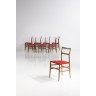 Gio Ponti (1891-1979) Modèle 699 dit Superleggera Suite de huit chaises Bois et textile Édition Cassina Modèle créé en 1957 H 82 × L 41 × P 45 cm Bibliographie : Ugo La Pietra, Gio Ponti, Ed. Rizzoli, 2009, p.247