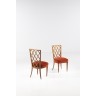 Gio Ponti (1891-1979) Paire de chaises Noyer et velours Modèle créé dans les années 1930 H 82 × L 40 × P 44 cm Bibliographie : Domus N°98, février 1936, p. 26.