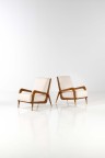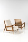 Gio Ponti (1891-1979) Paire de fauteuils Frêne, laiton et textile Édition Casa e Giardino Modèle créé en 1937 H 85,5 × L 87,5 × P 59 cm Expertisée par les Archives Gio Ponti