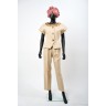 GIVENCHY NOUVELLE BOUTIQUE Printemps-été 1990 ENSEMBLE en toile fibranne mastic : veste rebrodée de boules pampilles et cubes "dabas", pressions, pantalon à pinces Env T S/M Iconographie : droits réservés