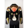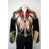 GIVENCHY X RICCARDO TISCI - Automne-hiver 2016 BLOUSON patchwork en chèvre métallisée tutti frutti et agneau velours noir, deux tirettes circulaires en métal doré T. 36 Manque un point de couture sur griffe Iconographie : droits réservés