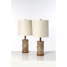 Gordon et Jane Martz (XX) Paire de lampes de table Céramique, noyer, laiton et tissu Edition Marshall Studios Date de création : années 1960 H 89ר 41 cm