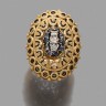 Grande bague ovale en or jaune 18k (750‰) ciselé à décor ajouré ornée au centre d'un motif pavé de diamants et saphirs ronds, les at...