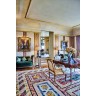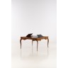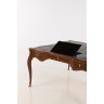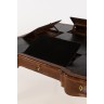 Grande table de bibliothèque en bois de violette, de forme mouvementée, ouvrant à trois tiroirs de chaque côté, avec quatre pupitres à crémaillère, reposant sur des pieds pincés et cambrés ; (accidents et manques).