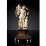 Groupe en ivoire sculpté en ronde-bosse représentant l’Ange gardien avec un enfant. L'ange tient un poignet de l'enfant de la main gauche tout en lui désignant le ciel de l'index de l'autre main ; il est revêtu d'une longue tunique blousante à la taille et ouverte sur sa jambe droite laissant voir sa cuisse. Base moulurée à pans en placage de noyer, de profi incurvé, reposant sur des pieds boules en ivoire Italie du nord, XVIIe siècle H 18,5 cm – H totale : 27 cm (petits accidents aux ailes)