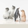 Groupe en porcelaine formé de deux hiboux sur une terrasse, décor polychrome au naturel. XXe siècle H 27 cm
