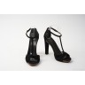GUCCI X TOM FORD 2000's PAIRE de SALOMÉS à talons et bouts ouverts en daim noir et cuir métallisé doré P 38 it Très légère patine
