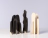 Ensemble de trois sculptures Grès Signées, titrées et datées sous la base Date de création : années 2010 H 29 × L 16 × P 5 cm H 26 × L 17 × P 11 cm H 23 × L 13 × P 9 cm