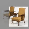 Gustave Serrurier-Bovy (1858-1910) Fauteuil à accotoirs pleins sur roulettes, 1902 Chêne vernissé, fer peint rouge et tissu havane H 102 × L 76 × P 70 cm Historique : un modèle similaire se trouvait dans le salon de la Villa l’Aube, de maison de Serrurier- Bovy sur les hauteurs de Liège Bibliographie : Jacques- Grégoire Watelet, Serrurier-Bovy, Ateliers Vokaer, Bruxelles, 1986, photo d’une variante de notre modèle in situ p. 70 / 71
