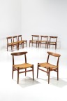 Suite de huit chaises modèle n°W2 Teck et rotin Édition C.M. Madsen Marquage à chaud 'CM Madsens Fabriker Made in Denmark Design Hans Wegner' Modèle créé vers 1953 H 75×L 55×P 39cm