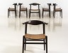 Hans J. Wegner (1914-2007) Cowhorn Six chaises Chêne, teck et cannage Edition Johannes Hansen Date de création : vers 1952 H 76 × L 42 × P 52 cm Bibliographie : Grete Jalk, ed., Dansk Møbelkunst gennem 40 aar, Volume 3: 1947-1956, Copenhagen, 1987