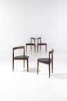 Suite de quatre chaises Teck et cuir Estampillées 'FREMROJLE' et Made in Denmark et étiquette 'Danish furniture' Editeur Frem Rojle Modèle créé vers 1950 H 71 x L 50 x P 42 cm