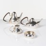Henning Koppel (1918-1981) Modèle 1017 Service à thé Argent et Acajou Georg Jensen Date de création : 1952 H 16 × L 25 × P 13 cm (cafetière) H 13 × L 15 × P 15 cm (théière) H 8 × L 13 × P 9 cm (pot à lait) H 4,5 × L 11 (pot à sucre)