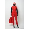HERMÈS - 1980/90's TENUE D'INTÉRIEUR en jersey de coton gratté rouge : veste zippée avec poche brodée et lien, pantalon à taille cou...