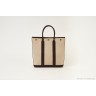HERMÈS - 2005 Petit CABAS "GARDEN" en toile "H" et veau Togo ébène Env. 28 x 32 x 7 cm Quelques micro marques, manque anse bandoulière