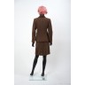 TAILLEUR en tweed chevrons brun et velours praliné, boutons corne ornés d'un cor de chasse : veste cintrée et jupe