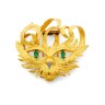 Clip de revers "Mistigri" stylisant une tête de chat en or jaune 18k (750‰) ciselé, les yeux sertis d’émeraudes navette
