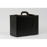 HERMÈS PILOT-CASE dite "MALLETTE PORTE-HABITS" en box noir, garnitures en laiton doré, clés sous clochette, porte adresse, intérieur compartimenté amovible 47 x 35 x 22 cm Légère usure aux coins, petites marques sur cuir