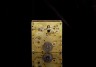 Horloge de table de forme carrée en bronze gravé, repercé et doré. Têtes d'angelots meublant les écoinçons de la table, représentations des quatre Evangélistes sur chaque face accompagnés de leurs noms respectifs LVCAS, MARCVS, IOHANES et MATHEVS dans un cadre paysagé et ajouré d'arcatures, mouluration à la partie supérieure et inférieure ; mouvement monogrammé MN. Cadran au centre orné de rinceaux feuillagés se terminant par des têtes d'oiseau, à une seule aiguille, chiffres romains pour les heures, arabes (avec le 2 en forme de Z) pour les minutes ; mouvement avec foliot sans spiral, roue de compte ; sonnerie "au passage" des heures. Allemagne du sud, vraisemblablement Augsbourg, fin du XVIe/début du XVIIe siècle H 7,5 × L 13,3 cm