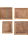 Ensemble de quatre œuvres murales Fragments de lambris de maison Toraja Bois gravé, teck et verre Modèle créé début XXe siècle H 52 × L 55 × P 5,5 cm H 47 × L 58 × P 5,5 cm H 55 × L 57 × P 5,5 cm H 52 × L 44 × P 5,5 cm