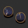 Ilias LALAOUNIS. Années 1970. Paire de boucles d'oreilles de forme ronde, système à pince, ornées de sodalite, la monture en or jaune 18 k (750°/oo), décorée d'une moulure de perles en or jaune. Signée, poinçonnée et numérotée. Diamètre : 2,6 cm Poids brut : 20,8 g