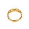 Magnifique bracelet jonc ouvrant en or jaune 21k et 18k brossé, filigrané et perlé et fil d'or torsadé, les extrémités en forme de têtes de félins très finement ciselées sont rehaussées de diamants et de rubis pour les yeux