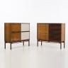 Paire de cabinets Noyer des Philippines pour l’un, noyer des Philippines, tissu et laiton pour l’autre Édition Ditta Tonelli & Broggi Date de création : 1957 Chaque : H 141 × L 160 × P 51 cm
