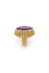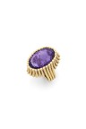 Importante bague en fils d'or jaune 14k (585‰) soudés ornée d'une améthyste ovale facettée