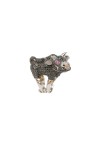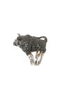 Importante bague sculpture en argent (925‰) ornée d'un taureau, entièrement serti de strass