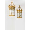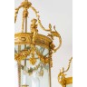 Importante paire de lanternes dites 'cages' en bronze doré à trois lumières à décor néoclassique de putti jouant des cymbales, chute...