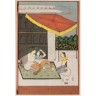 Inde Style moghol, XXème siècle Couple sur la terrasse d'un pavillon accompagnés d'une servante