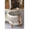 Indiscret en bois naturel mouluré reposant sur des pieds cambrés, recouvert de soie florale à passementerie. Style Louis XV H 60 ר 120 cm
