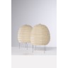 Isamu Noguchi (1904-1988) Modèle n° 20N Paire de lampes Papier washi et métal laqué noir Édition Ozeki Idéogramme rouge 'Soleil et Lune' et signature Date de création : 1969 H 58 × Ø 42 cm