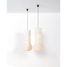 Isamu Noguchi (1904-1988) Série Akari - Modèle S2 Paire de suspensions Papier Washi, bambou et métal laqué Édition Ozeki & Co Idéogramme dit 'Soleil et Lune' Modèle créé vers 1970 H 94 × Ø 44 cm