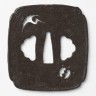 JAPON - Époque EDO (1603 - 1868) XVIIIe siècle Hokkei gata en fer à décor en kage-sukashi de grues et tortue stylisée. École Umetada. Non signée. H 8,6 cm