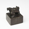 JAPON - Époque MEIJI (1868 - 1912) Poids de forme carrée en bronze à patine brune, la prise fiurant une tortue minogamée portant...