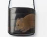 JAPON - XVIIe/XVIIIe siècle Inro à trois cases en laque noir décoré en togidashi de laque or de deux rongeurs. Signé Shiomi Masanari sur le côté. H 7,5 cm (Petits accidents) Provenance : Proviendrait de l'ancienne collection Arthur Kay (étiquette)