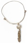 Années 1970 Collier torque en métal argenté retenant un pendentif abstrait Signé Diamètre intérieur : 11,5 cm Dimensions du pendentif : 9 x 1,5 cm