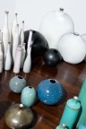 Ensemble de deux vases dits 'Boules' Céramique émaillée Signature incisée ‘Ruelland’ sur l’envers de chaque Modèle créé vers 1970 H 12 × Ø 12 cm ; H 18 × Ø 20 cm