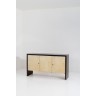 Jacques Adnet (1900-1984) Buffet Bois laqué, laiton et parchemin Modèle créé vers 1940 H 85×L 150×P 45cm