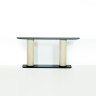 Jacques Adnet (1900-1984) Console Bois laqué, parchemin et opaline Date de création : vers 1940 H 83 × L 180 × P 35 cm Bibliographie : Alain-René Hardy, Gaëlle Millet “Jacques Adnet”, Les Editions de l’Amateur, 2009, modèle similaire reproduit page 141