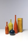 Ensemble comprenant trois bouteilles, un vase et un soliflore Céramique émaillée Signatures incisées ‘Ruelland’ sur l'envers Modèles créés vers 1960 H 31cm H 25,5 cm H 23 cm H 21 cm H 10 cm