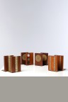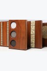 Ensemble de quatre serre-livres Noyer, céramique et laiton Édition Marshall Studios Étiquette de l’éditeur sur l’une des bases Modèle créé vers 1970 H 19 × L 12,5 × P 11 cm