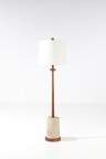 Lampadaire Céramique, noyer, laiton et textile Édition Marshall Studios Modèle créé dans les années 1960 H 155 × Ø 43,5 cm