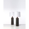 Jane & Gordon Martz (XX) Paire de lampes de table Céramique, noyer, laiton et textile Edition Marshall Studios Gravées 'Martz' sur les bases H 102ר(abat-jour) 46ר (base) 23cm