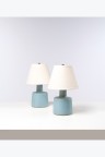 Paire de lampes de table Noyer, céramique, laiton et textile Édition Marshall Studios Signées sur les bases Modèle créé dans les années 1960 H 41 × Ø 26 cm