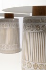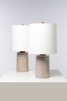 Paire de lampe de table Céramique, noyer, laiton et textile Édition Marshall Studios Signée 'Martz' sur les bases Modèle créé vers 1960 H 78 × Ø 40 cm