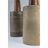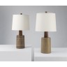 Jane & Gordon Martz (XXe) Deux lampes de table Céramique, noyer, laiton et textile Édition Marshall Studios Gravées 'Martz' Date de création : années 1960 H 84 × Ø 43 cm Achetées en paire par l'ancien propriétaire.